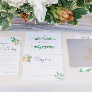 Gracey had graciously accepted being my model and she was a perfect fit! We went into Annelise Bridal to find the dress. Afton was such a huge help and has a great store with many options. We loved the high neckline that accented Gracey’s delicate shoulders. The lace had a boho simple feel with a great outline detail. It was such a great match for the citrus theme. The dress designer is Wilderly Bride “Adele” dress. Hair piece : Hair comes the Bride “Brooklyn”.